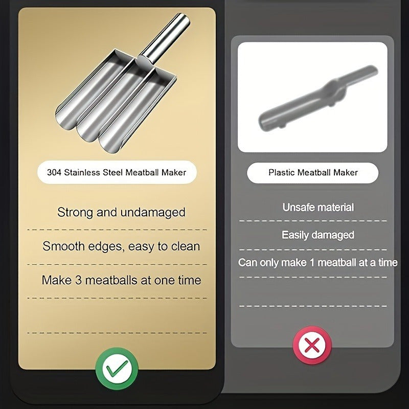 1pc Triple Meatball Maker - Non-Stick Multi-Functional Mold for DIY Meatball, Salad Sandwich, Cookie Dough, and Ice Pastry - Easy-to-Use Cooking Tool for Restaurant Kitchen and Home Cooking Enthusiasts